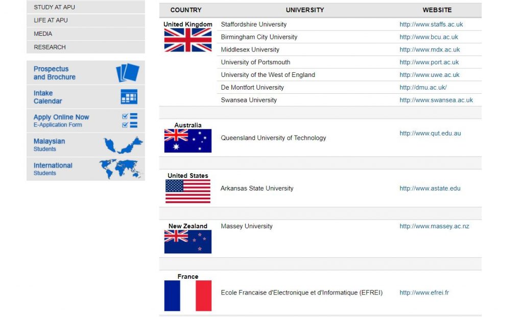 つまり、1年目はマレーシアで学び、2年目、もしくは最終学年(3年目)でイギリス、アメリカ、オーストラリア、ニュージーランド、ヨーロッパ、南アメリカなどのパートナー大学に編入することも可能と言う訳です。