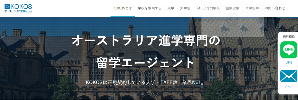 KOKOSの特徴は、オーストラリア全土にある語学学校、TAFE、大学ならほぼ全てを紹介可能であること、これまで6万5千人以上の留学をサポートした実績、カウンセラーは全員、海外大学を卒業した留学経験者であることです。