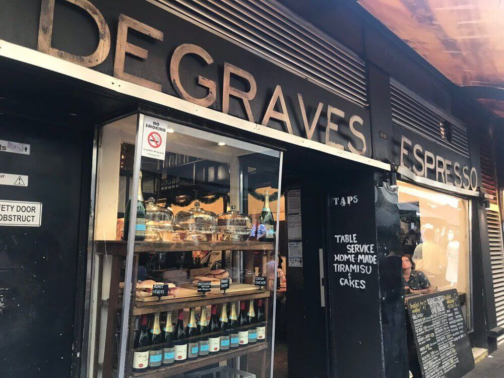 メルボルンの象徴的な駅、フリンダースストリート駅の目の前にある細い路地がデグレーブストリートと呼ばれる通りです。