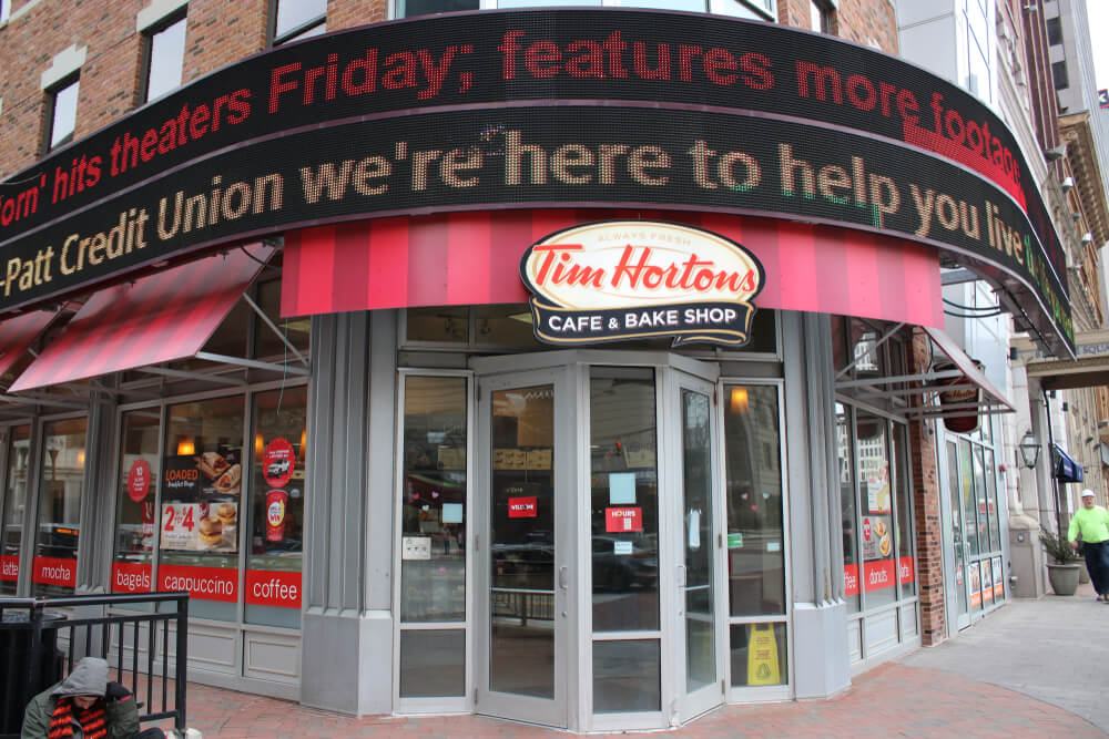 カナダ最⼤のコーヒー・ドーナツチェーンで、 カナダではどこに⾏っても⾒ることができ、どこでもティムホートンズのカップを持っている⼈を⾒かけるほど⼤⼈気です。