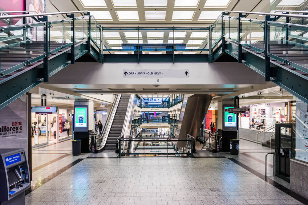 「モントリオール地下街(RÉSO)」は、噴水から流れる水の音、高い天井からは空が見渡せるので地下とはいえ、開放的なのが嬉しいポイント。モントリオールの真冬はマイナス20℃まで冷え込む時期もあり、一日約50万人も利用するので驚きですね。お土産探しはもちろん、おしゃれなカフェやレストラン、フードコートもあるので、ぜひ立ち寄ってみましょう。