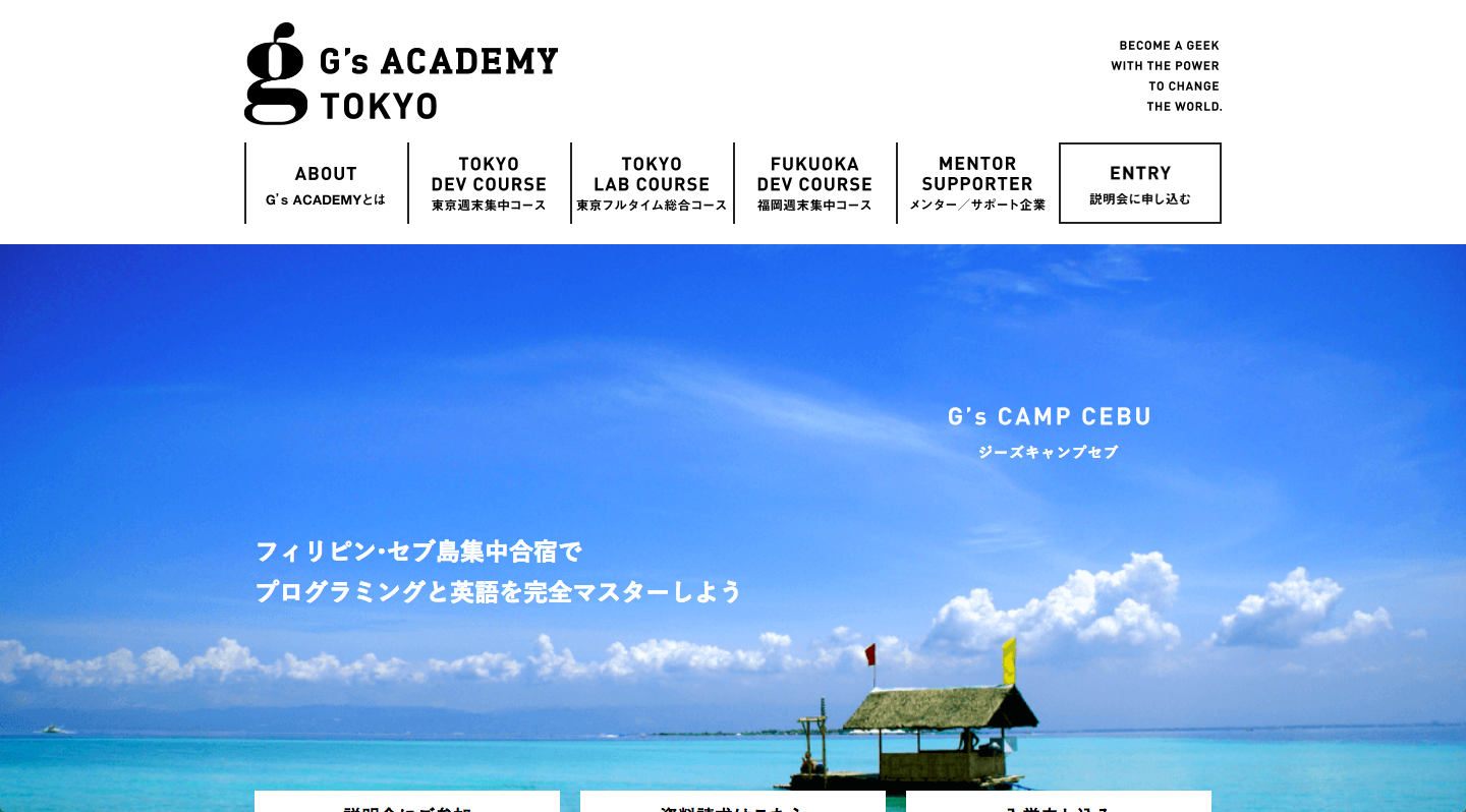 G’s CAMP CEBUは、東京のプログラミングスクール「G’s ACADEMY TOKYO」が運営する短期留学CAMPです。4週か12週のコースで選ぶことができ、プログラミングの基礎からPythonによる機械学習やモバイルアプリケーションの開発などの応用までを学ぶことができます。