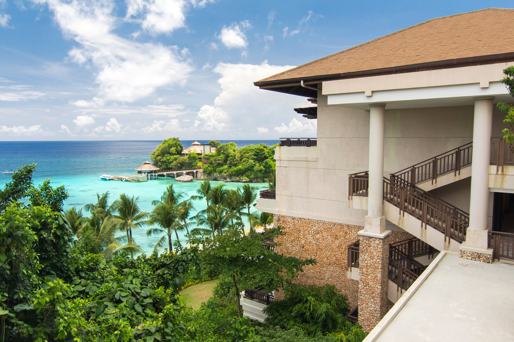 セブ・マクタン島海辺のリゾートホテルに軒を連ね、真っ白の外観がまぶしいQQイングリッシュの新たなキャンパス、シーフロント校。